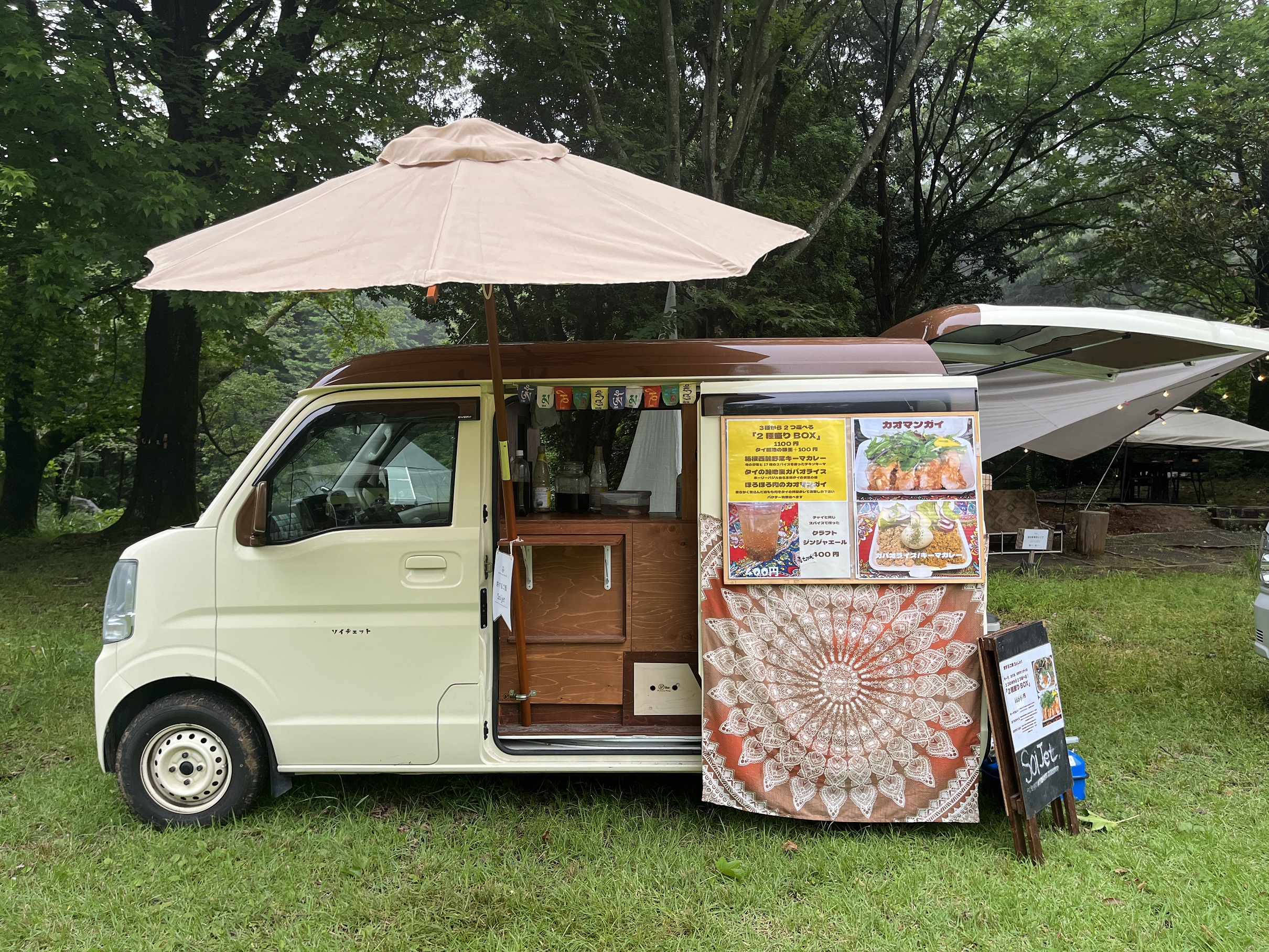 キッチンカーでキーマ、ガパオ、カオマンガイなどエスニック料理と店主の撮影したインドのヒマラヤチベット仏教圏の映画と写真の説明と可能であれば簡単な展示