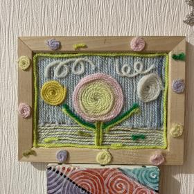毛糸をボンドで貼る、毛糸絵画ネアリカ