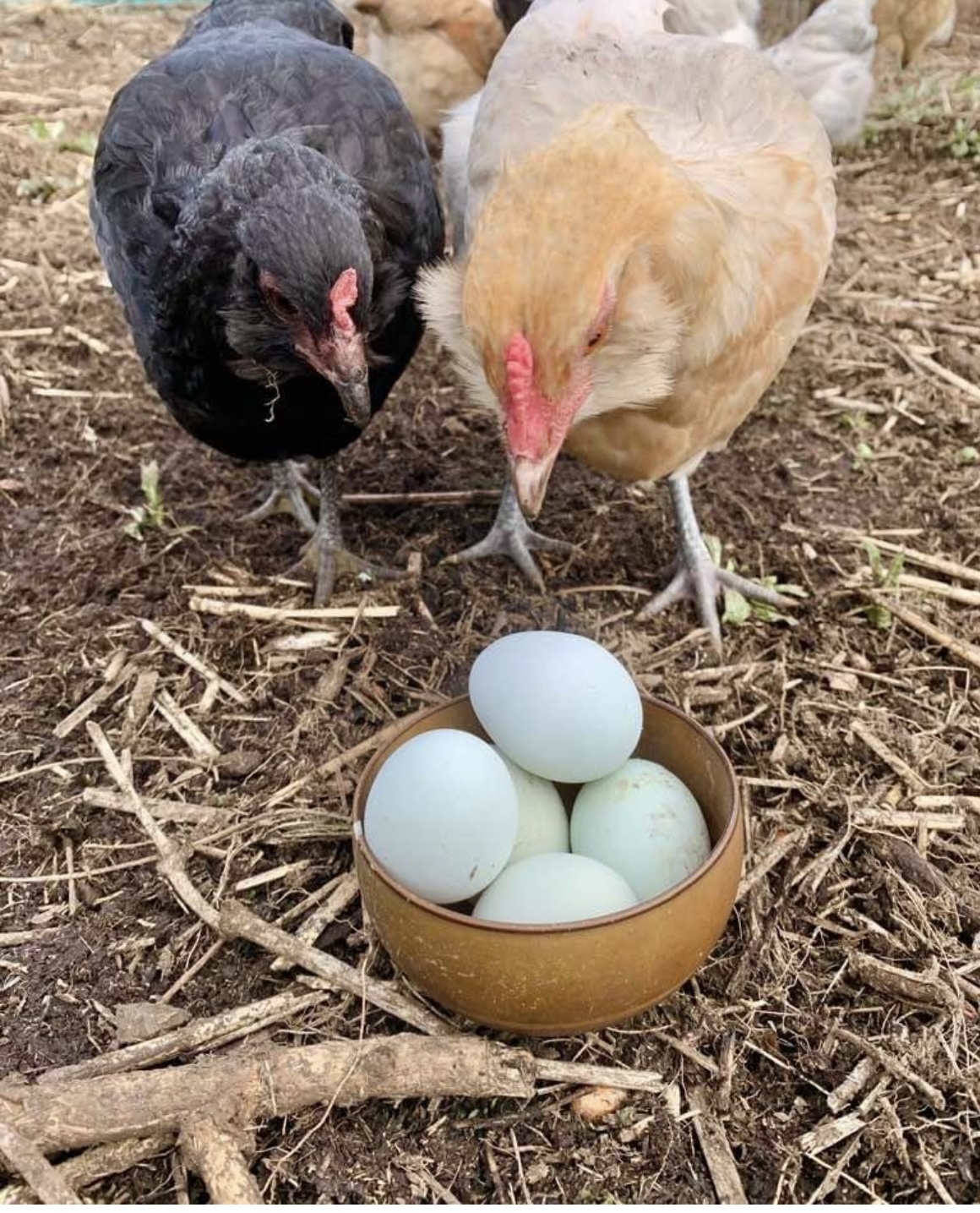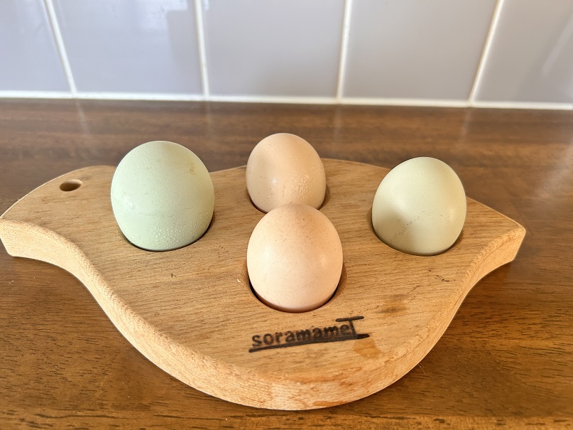 平飼い養鶏のアローカナと烏骨鶏の卵