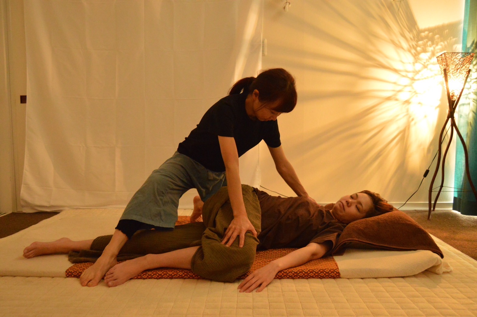 タイ古式マッサージの特徴である指圧、ストレッチを組み合わせて、